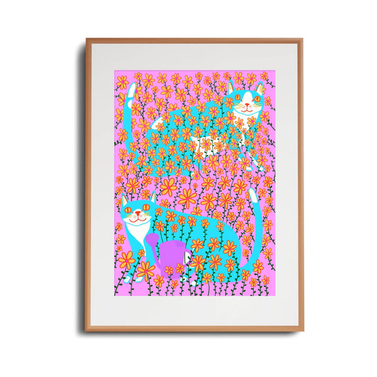Painted Vintage Cups and Saucers - Pink Cats and Flowers