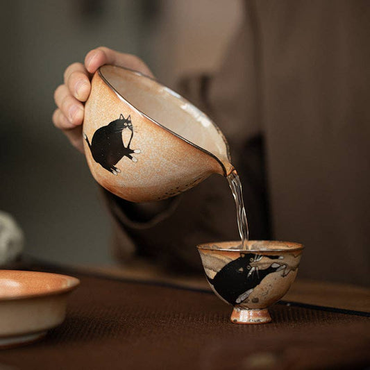 Gohobi Handmade Black Ink Hand-Painted Cat Gaiwan Teapot