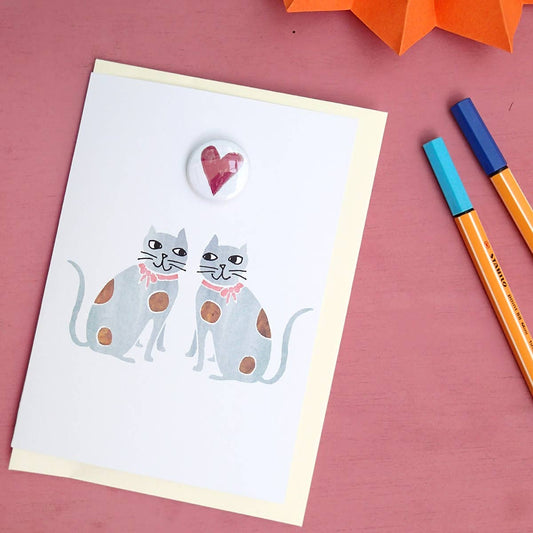 Staffordshire Heart Cats - Greeting Card With Badge