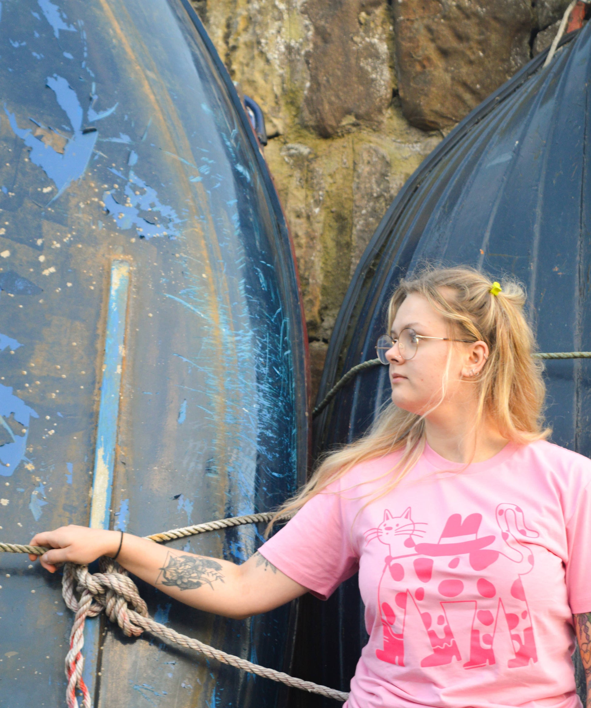 Each t-shirt comes with a cowboy cat swing tag with washing instructions.