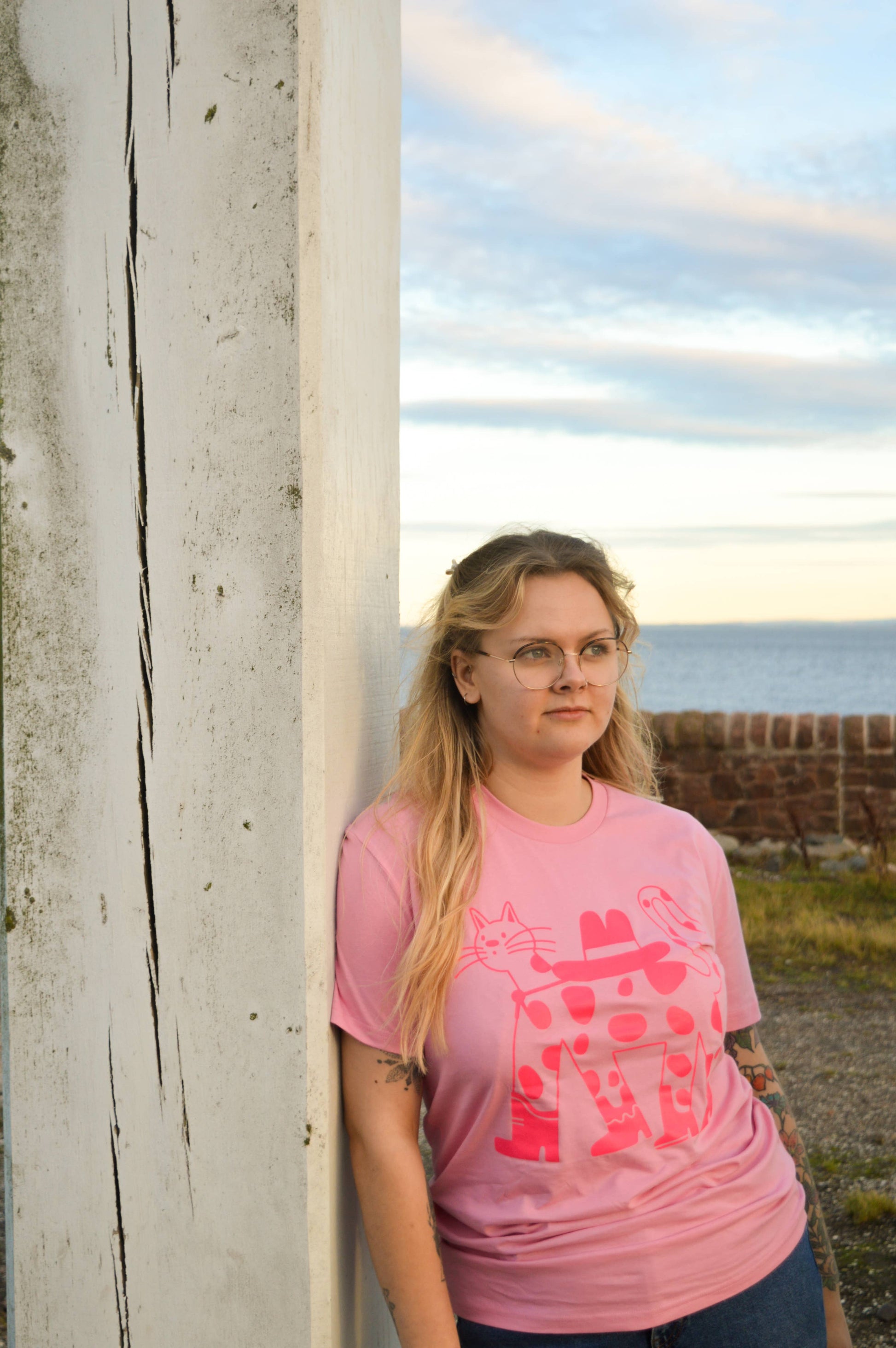 Howdy Partners! People can now make their fellow cowfolk jealous when they walk in a room in their boots and screen-printed cowboy cat t-shirt.