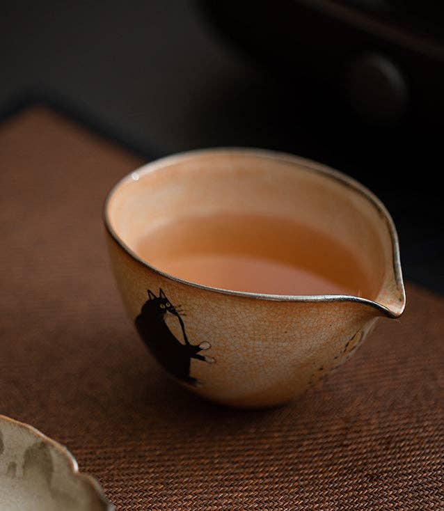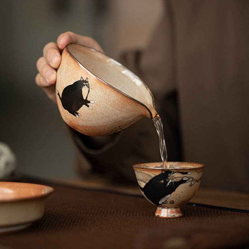 Introducing the Gohobi Handmade Black Ink Hand-painted Cat Pitcher, a must-have for tea connoisseurs.